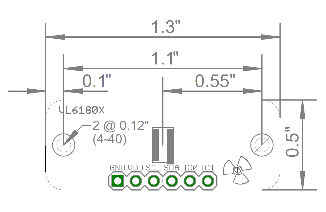 Highly integrated breakout board for the ST Micro VL6180X Time of Flight (ToF) range finder sensor. This sensor has many uses in the robotics, cell phone and gesture recognition space. It has two programmable GPIO pins, and most importantly, measures absolute distance up to 100mm. The SEN-36001 includes a VL6180X IC centered between two 4-40 sized mounting holes with onboard 2.8V LDO and voltage translation to handle interface voltages from 3V to 5V. The board is interfaced via an I2C interface and all IC pins have been broken out to a 0.1" pin header. Example code for the Arduino platform is available below and includes code for both the proximity measurement and ambient light sensing capabilities.